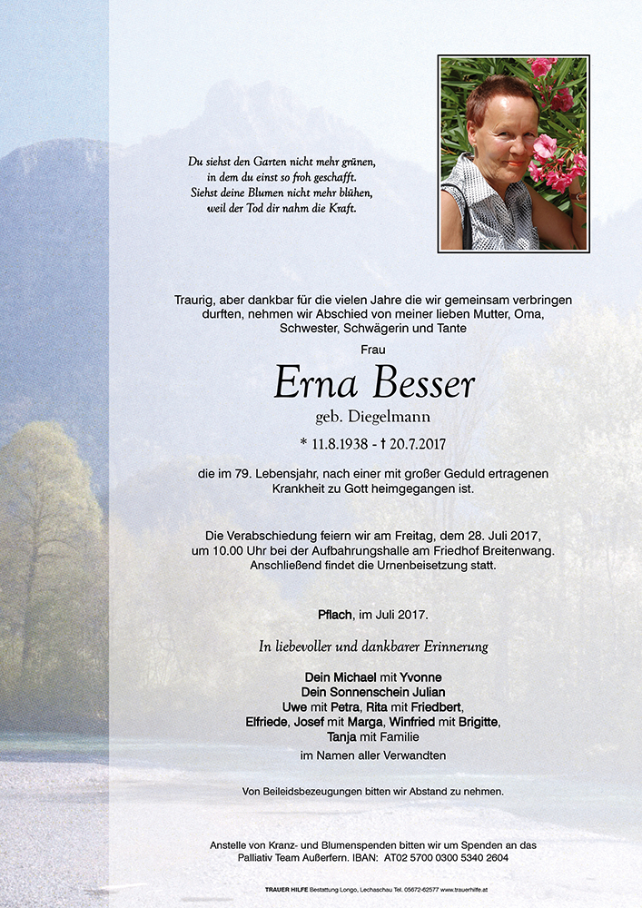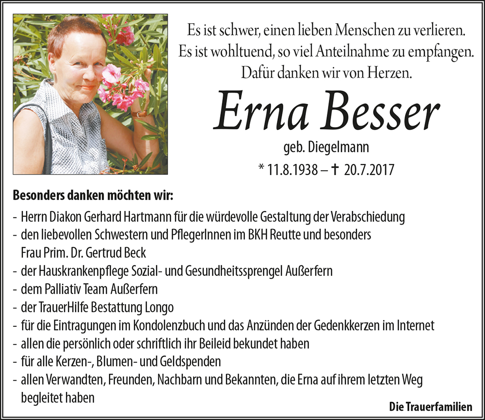 Kondolenzbuch für Erna Besser