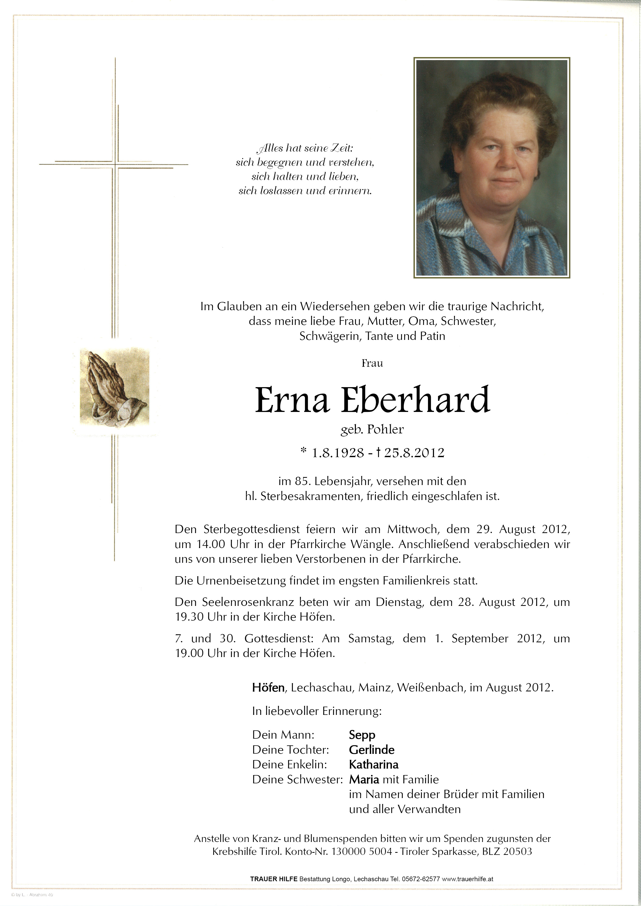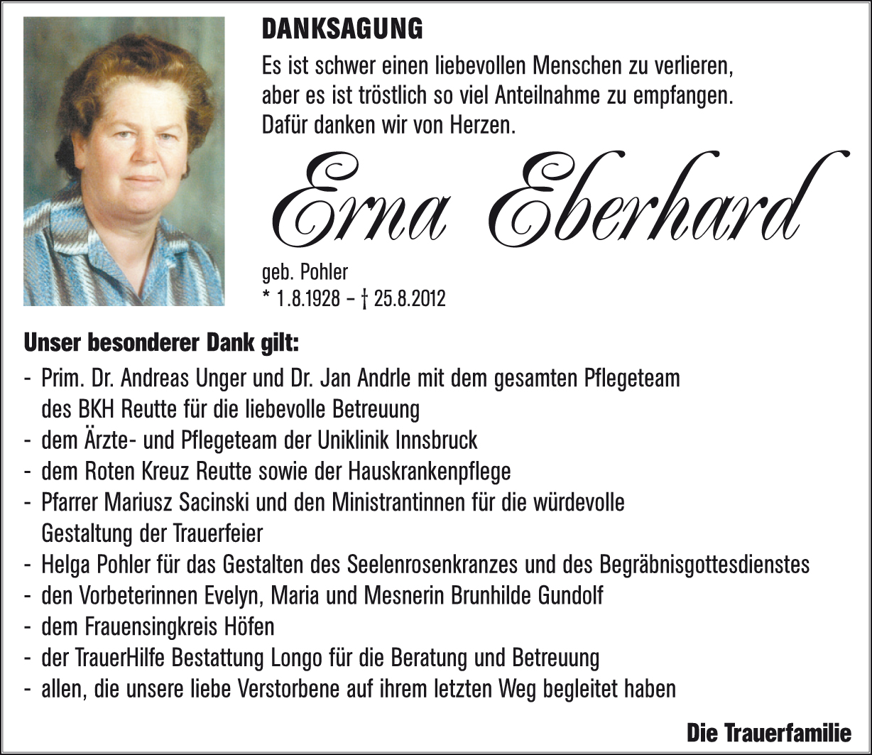 Kondolenzbuch für Erna Eberhard