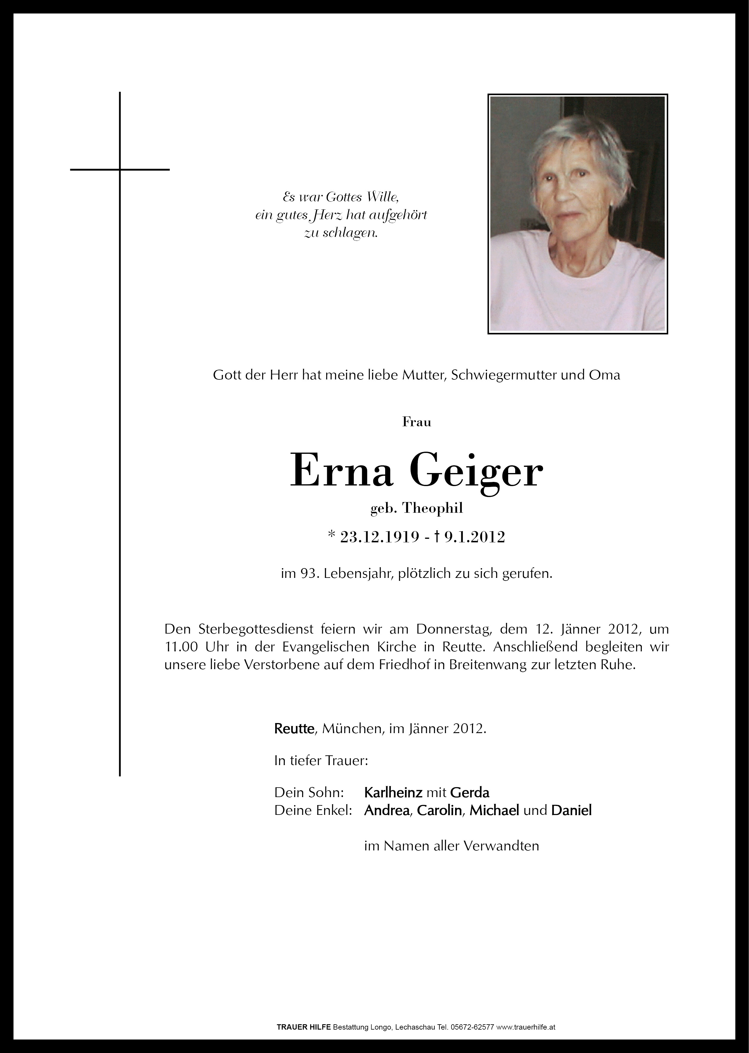 Still bist du von uns geschiedenhin ins Land der Ewigkeit.Schenke Gott dir Ruh‘ und Friedennach des Lebens Müh‘ und Leid.