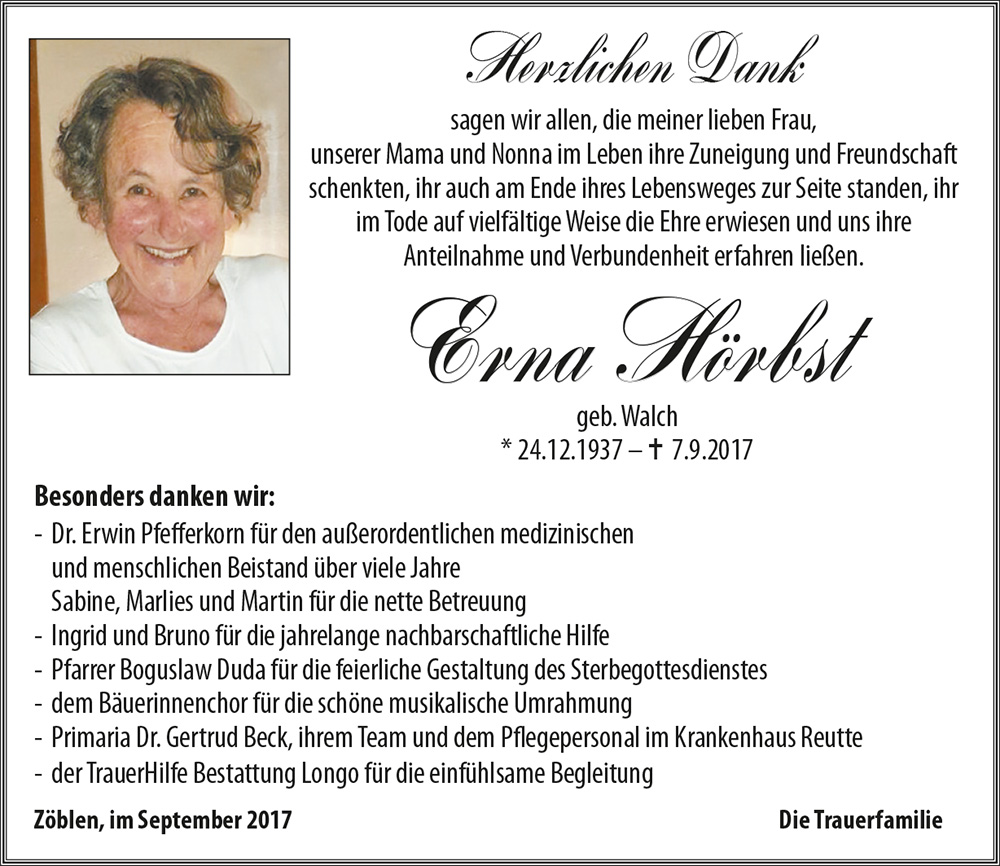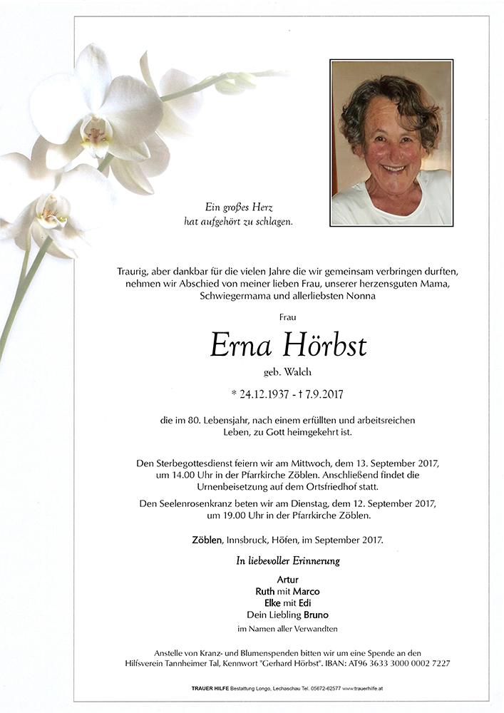 Kondolenzbuch für Erna Hörbst