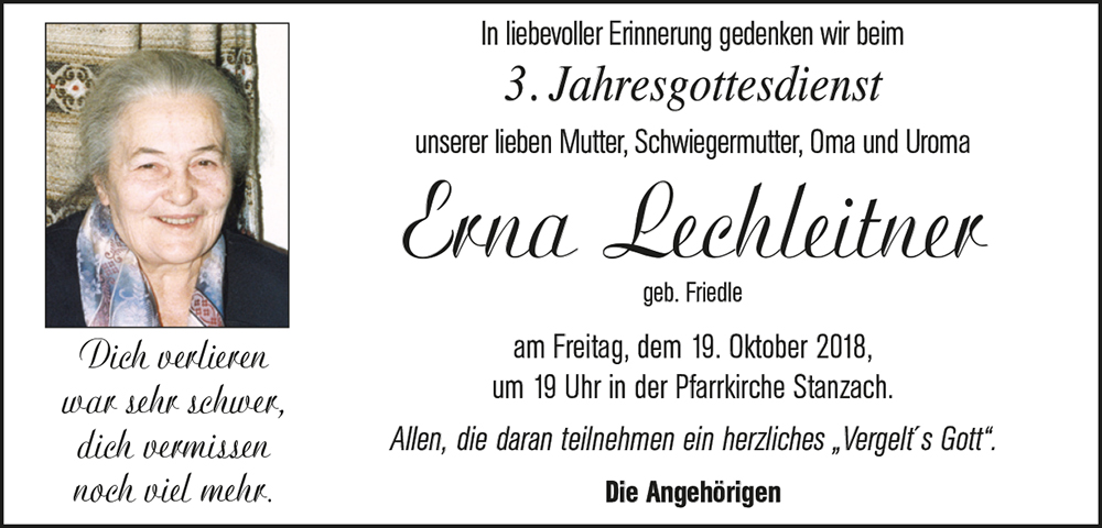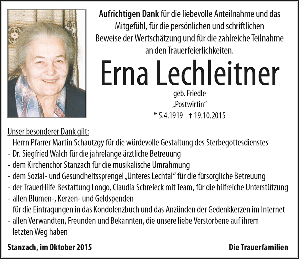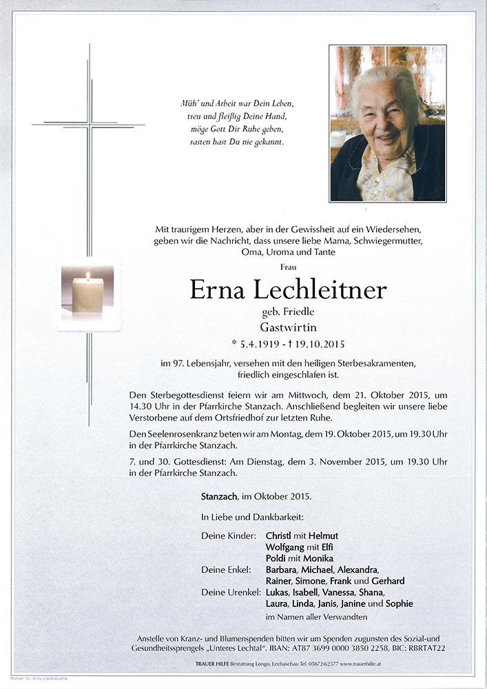 Kondolenzbuch für Erna Lechleitner