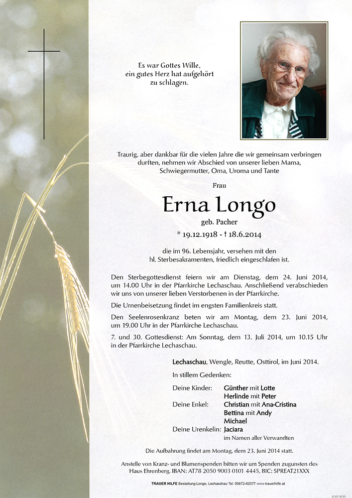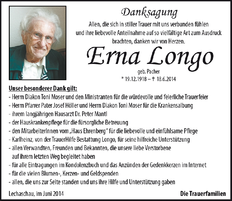 Mit inniger Anteilnahme, Peter, Christian und Dominic Longo