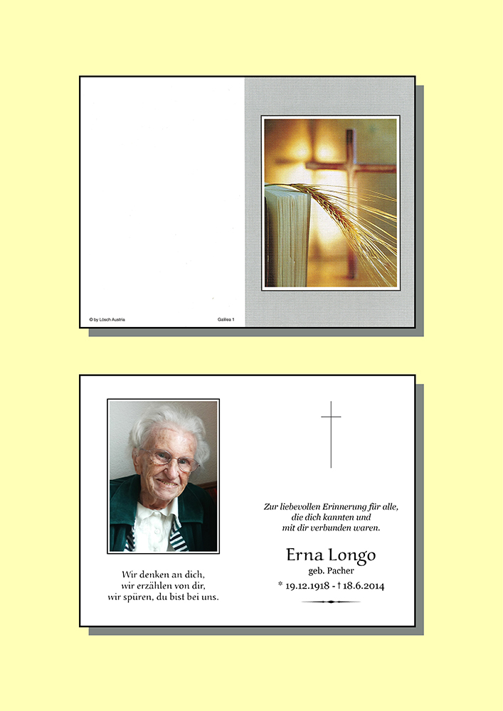 Liebe Tante Erna, wie gerne hätte ich dich noch besucht, aber es war mir nicht vergönnt, deshalb bitte ich deine Angehörigen, Günther und Herlinde, mit Familien, unser tiefstes Mitgefühl entgegenzunehmen, mit einem Zitat des berühmten Piloten, Postfliegers und Schriftstellers, Antoine de Saint Exupery: "Das, was dem Leben Sinn verleiht, gibt auch dem Tod Sinn!"