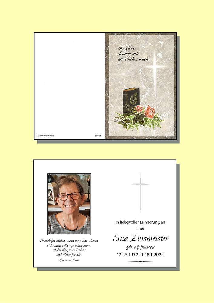 Kondolenzbuch für Erna Zinsmeister