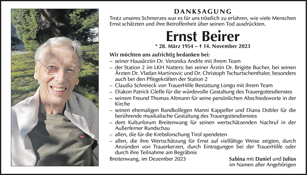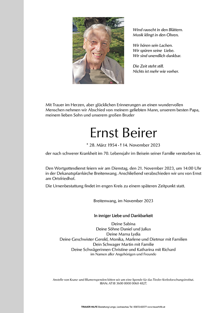 Kondolenzbuch für Ernst Beirer