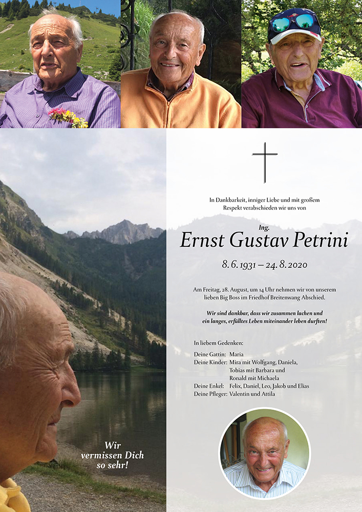 Was Euch allen und uns jetzt bleibt, sind viele schöne Erinnerungen, viele tolle Gedanken, interessante Gespräche, gesammelt in unzählige schönen Stunden mit Ernst. Diese Momente werden wir für immer festhalten, einfangen und im Herzen bewahren.
