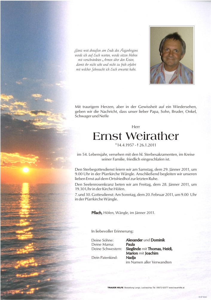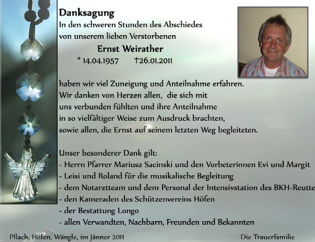 Kondolenzbuch für Ernst Weirather