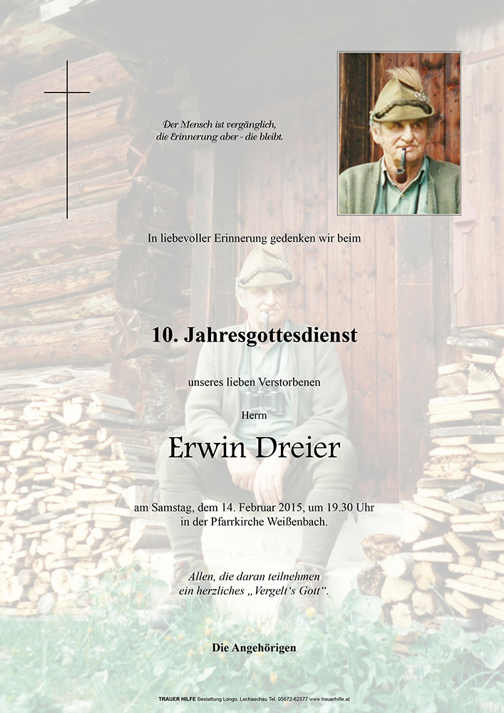 09.05.1921 15.02.2005 Weißenbach am Lech Erwin Dreier Action Parte Gedenkkerzen Kondolenzen Jahrestag Parte Gedenkkerzen Kondolenzen Jahrestag Parte herunterladen Gedenkkerzen für Erwin Dreier 1 Eintrag Kerze anzünden Fam. Alber Paznaun Ihre Gedenkkerze fürErwin Dreier Ihr Name* Farbe auswählen Ihre Nachricht oder Name* E-Mail-Adresse* Mit dem Klicken auf "Kerze anzünden" erklären Sie sich mit unseren Datenschutzbestimmungen einverstanden. Kondolenzbuch für Erwin Dreier 0 Einträge Kondolenz verfassen Ihr Abschiedsgruß an Erwin Dreier Ihr Name* E-Mail-Adresse* Ihre Nachricht* Mit dem Klicken auf "Gruß absenden" erklären Sie sich mit unseren Datenschutzbestimmungen einverstanden. Jahrestag herunterladen