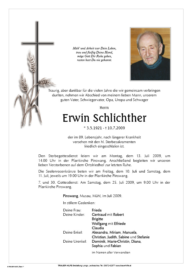 13.12.1901 10.07.2009 Pinswang Erwin Schlichther Action Parte Gedenkkerzen Kondolenzen Parte Gedenkkerzen Kondolenzen Parte herunterladen Gedenkkerzen für Erwin Schlichther 5 Einträge Kerze anzünden Irina und Christian christian mit tochter irina christian mit tochter irina Alexandra u. Michael Dominik, Marie-Christin, Sophia Ihre Gedenkkerze fürErwin Schlichther Ihr Name* Farbe auswählen Ihre Nachricht oder Name* E-Mail-Adresse* Mit dem Klicken auf "Kerze anzünden" erklären Sie sich mit unseren Datenschutzbestimmungen einverstanden. Kondolenzbuch für Erwin Schlichther 0 Einträge Kondolenz verfassen Ihr Abschiedsgruß an Erwin Schlichther Ihr Name* E-Mail-Adresse* Ihre Nachricht* Mit dem Klicken auf "Gruß absenden" erklären Sie sich mit unseren Datenschutzbestimmungen einverstanden.