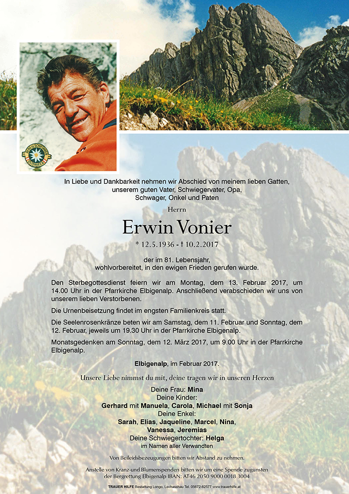 Kondolenzbuch für Erwin Vonier