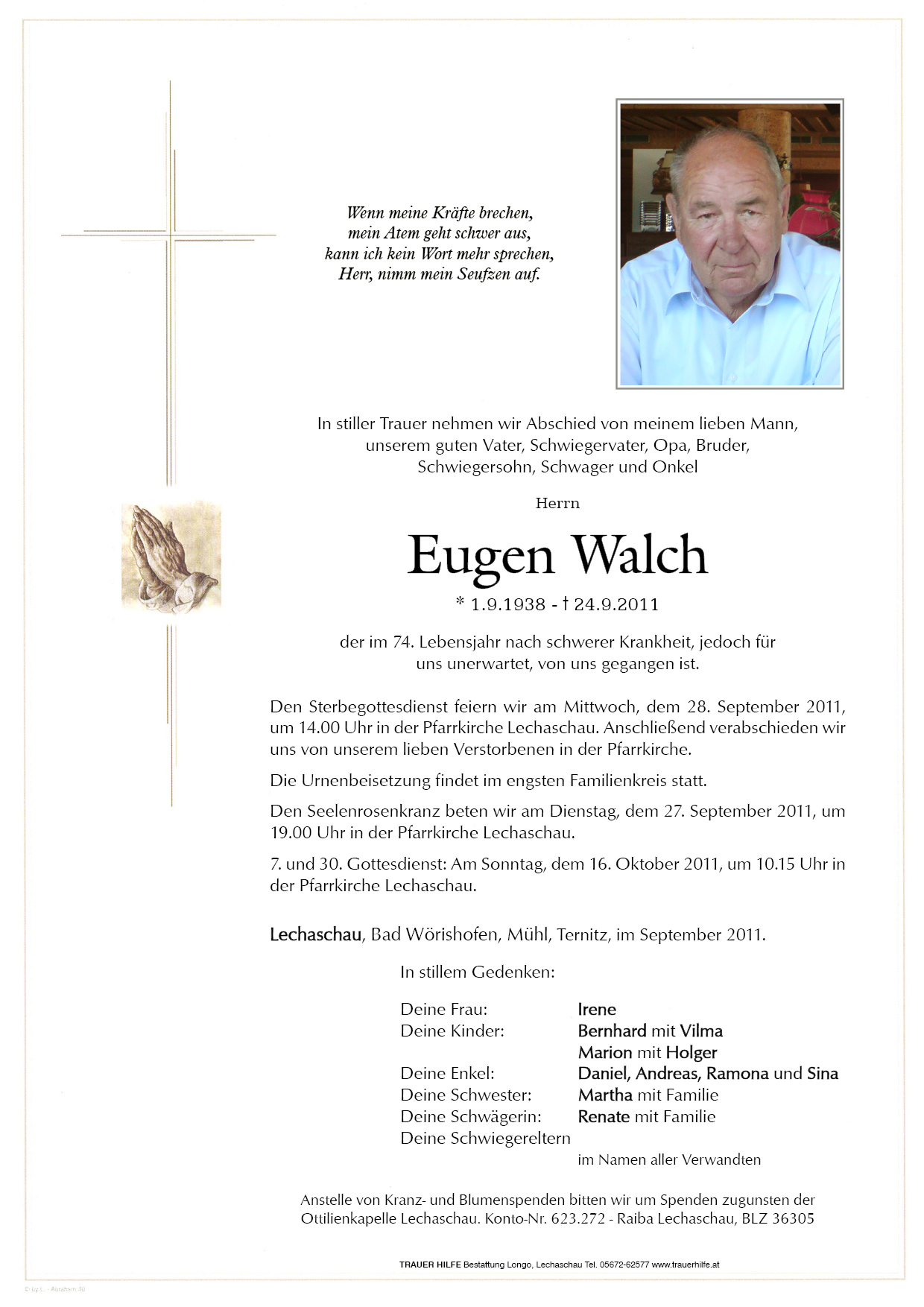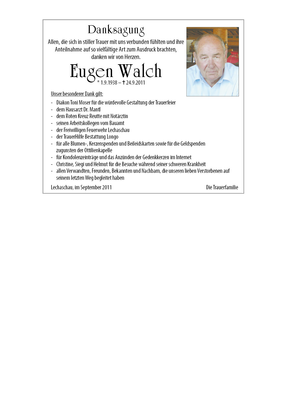 wir möchten auf diesem Wege unsere aufrichtige Anteilnahme am Tode eures lieben Eugen bekunden.