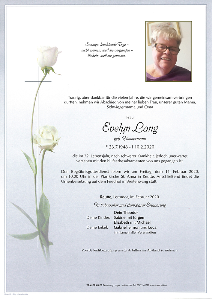 Kondolenzbuch für Evelyn Lang