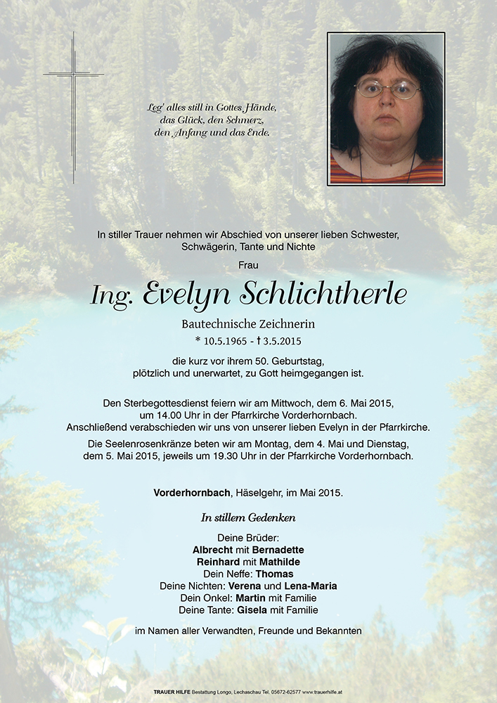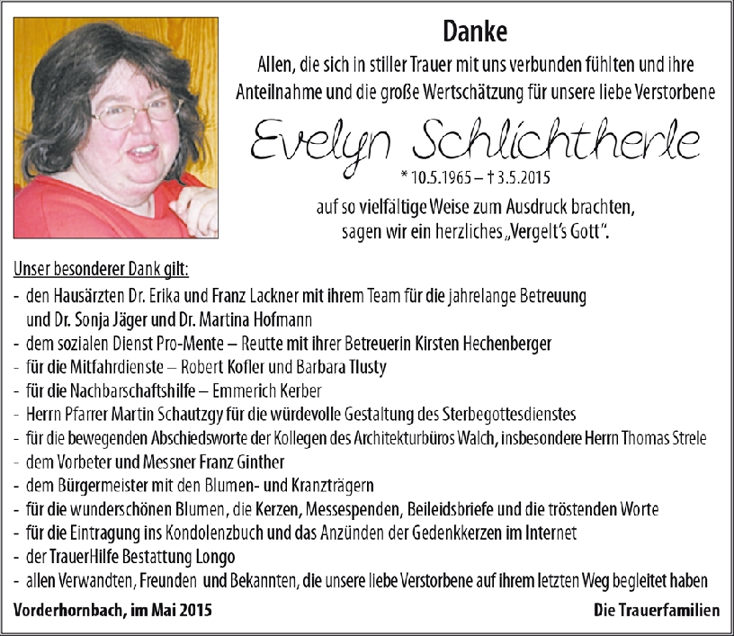 Kondolenzbuch für Evelyn Schlichtherle