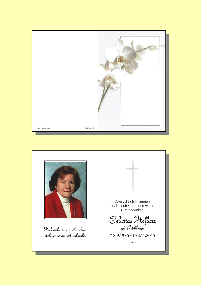Eure geliebte Mutter ist eingeschlafen, von Ihrem Leiden erlöst worden und