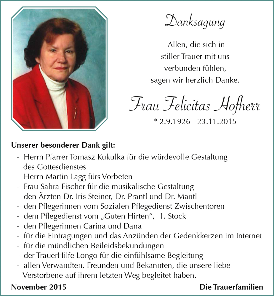 Kondolenzbuch für Felicitas Hofherr