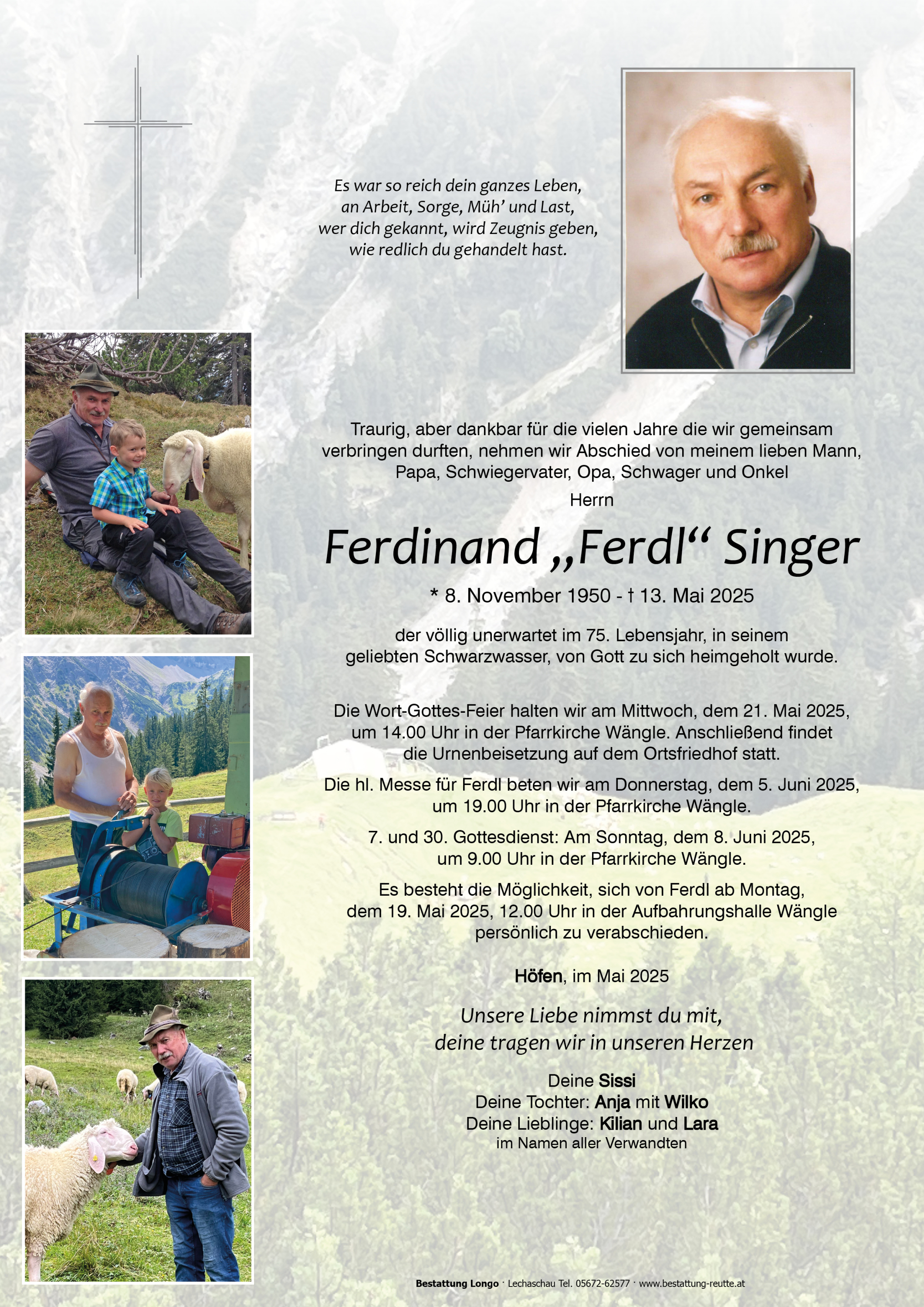 Kondolenzbuch für Ferdinand "Ferdl" Singer