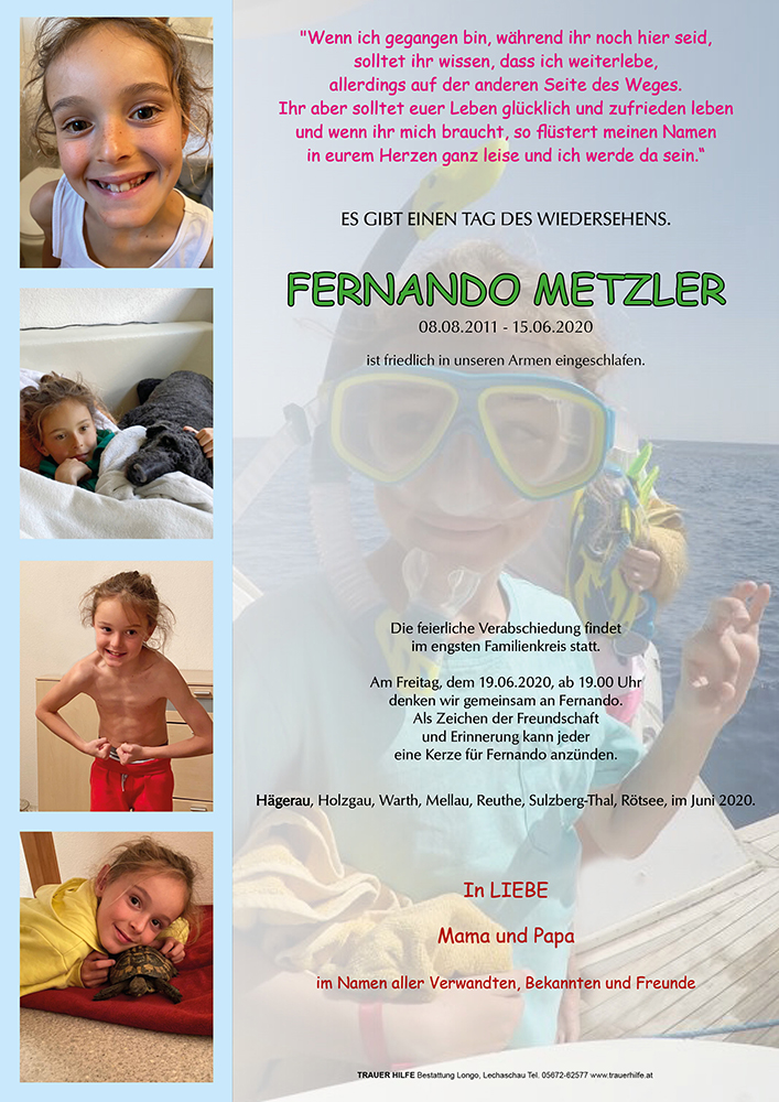 Unser Engel Fernando ist nun schon 5 Jahre im Himmel und wacht über uns. Kein Tag vergeht, an dem wir nicht an ihn denken, an dem wir ihn nicht unendlich vermissen. Die Jahre vergehen, doch die Liebe bleibt – tief, unverändert und ewig.