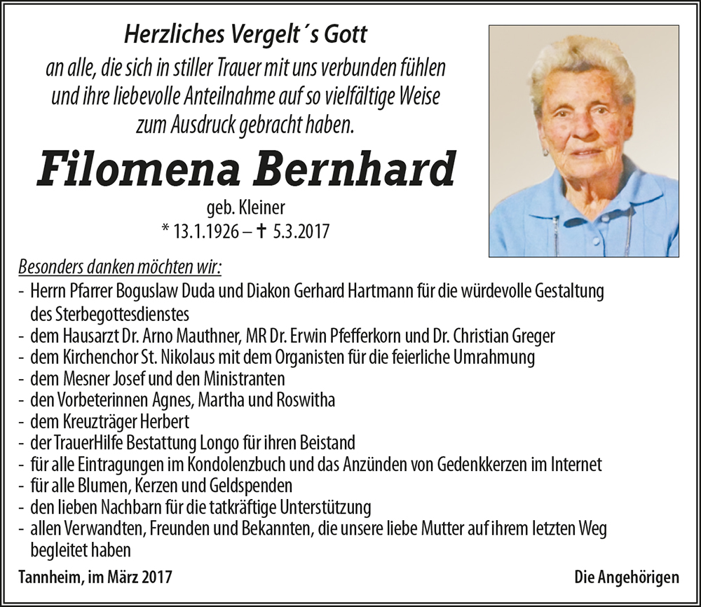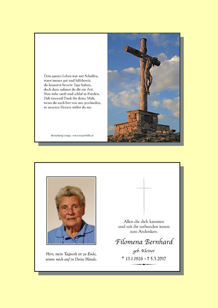 Kondolenzbuch fĂŒr Filomena Bernhard