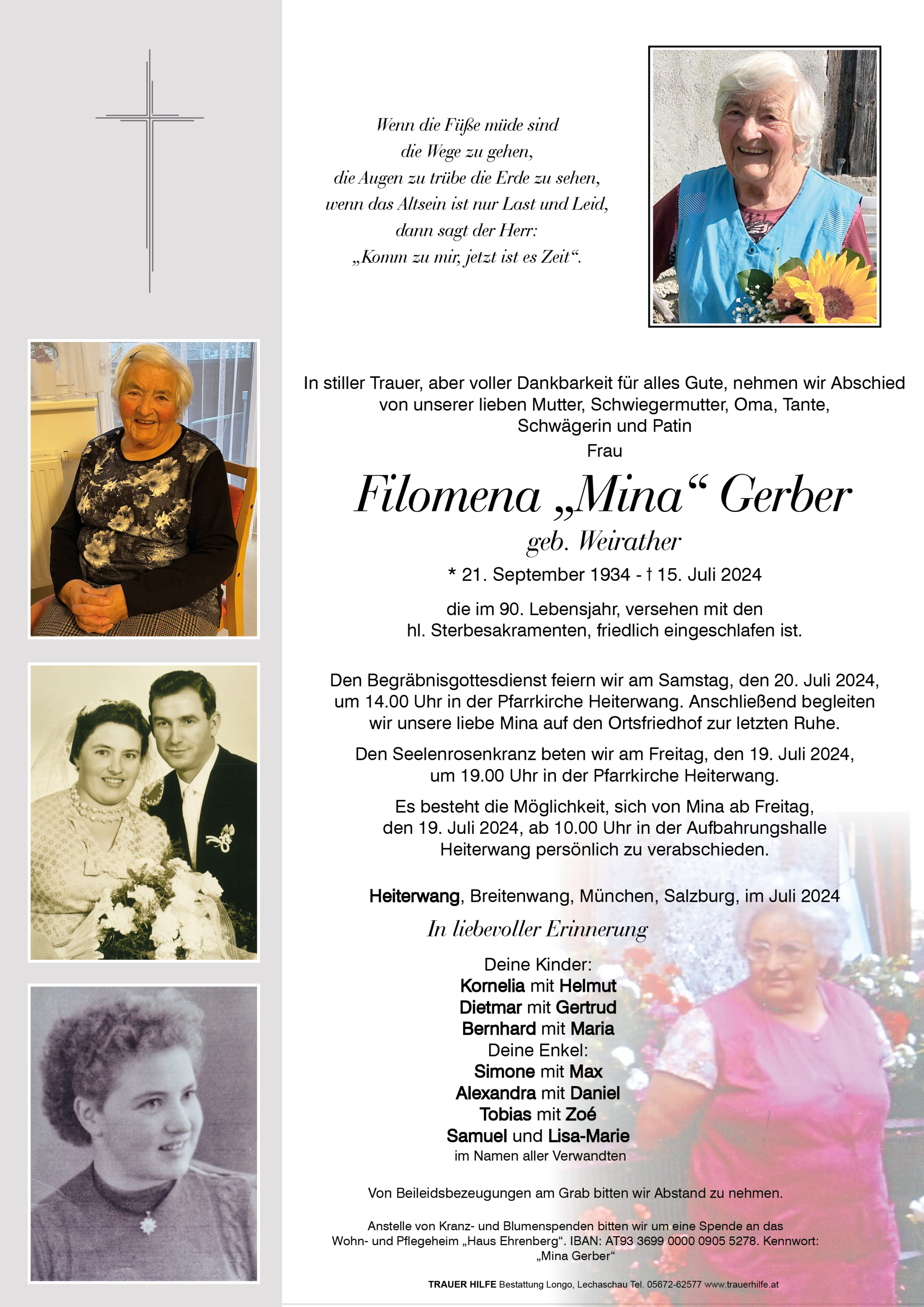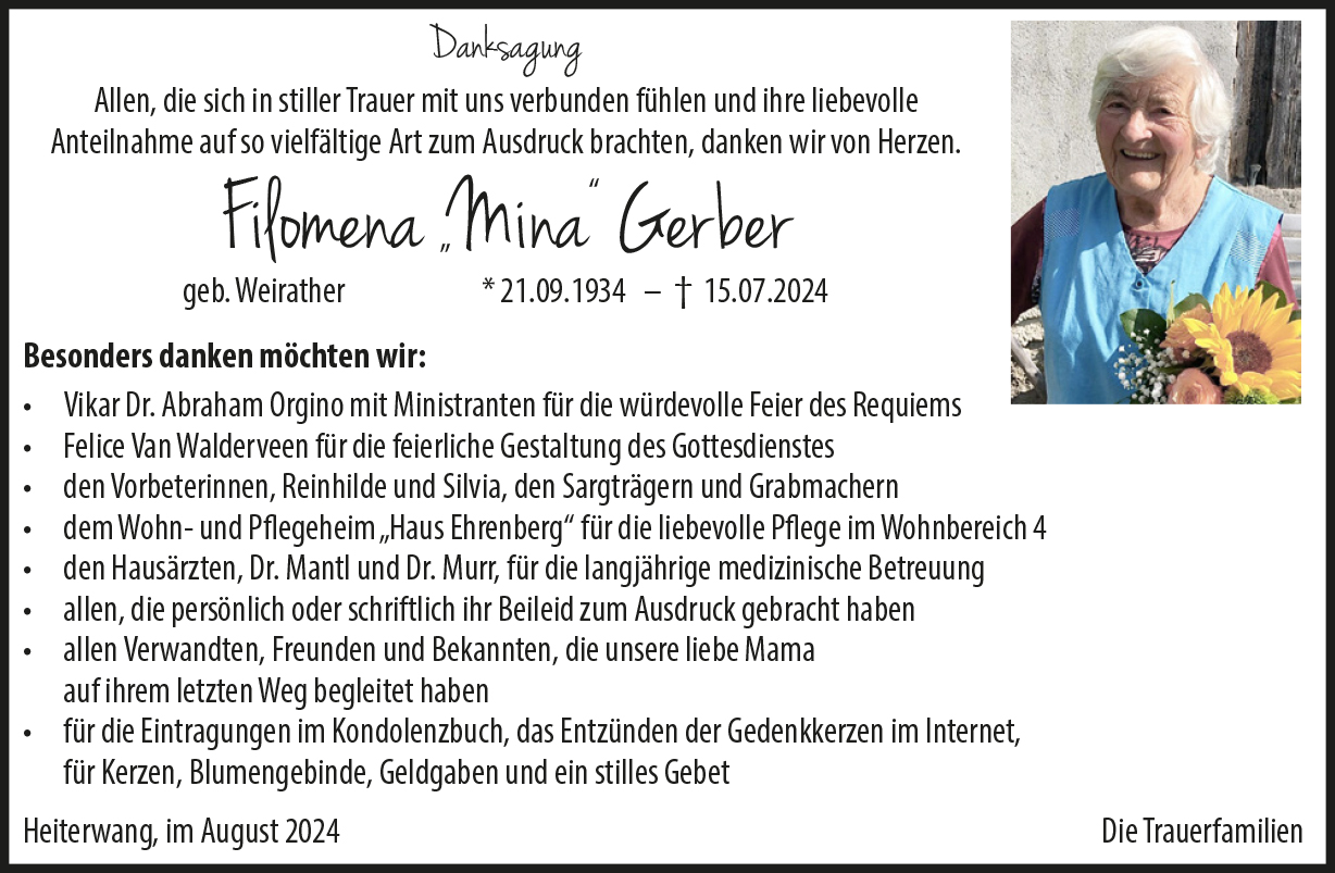Liebe Mina. In Stunden des Abschieds werden plötzlich so viele Erinnerungen wach, die über Jahrzehnte, bis zur Zeit unserer Väter zurückgehen, die beide als Jäger im Revier Bichlbach und Heiterwang ihren Dienst taten. Danach, wo Christian und ich, euch so oft am Weg von Reutte nach Bichlbach mit unseren Lebensmitteln beliefern durften. Immer willkommen, immer freundlich eingeladen, und immer nach einem humorvollen Huagart verabschiedet. Ruhe in Frieden.