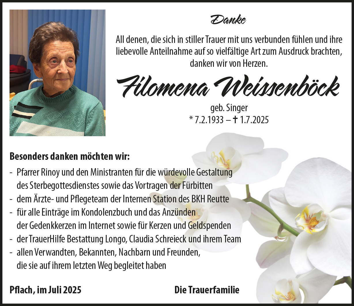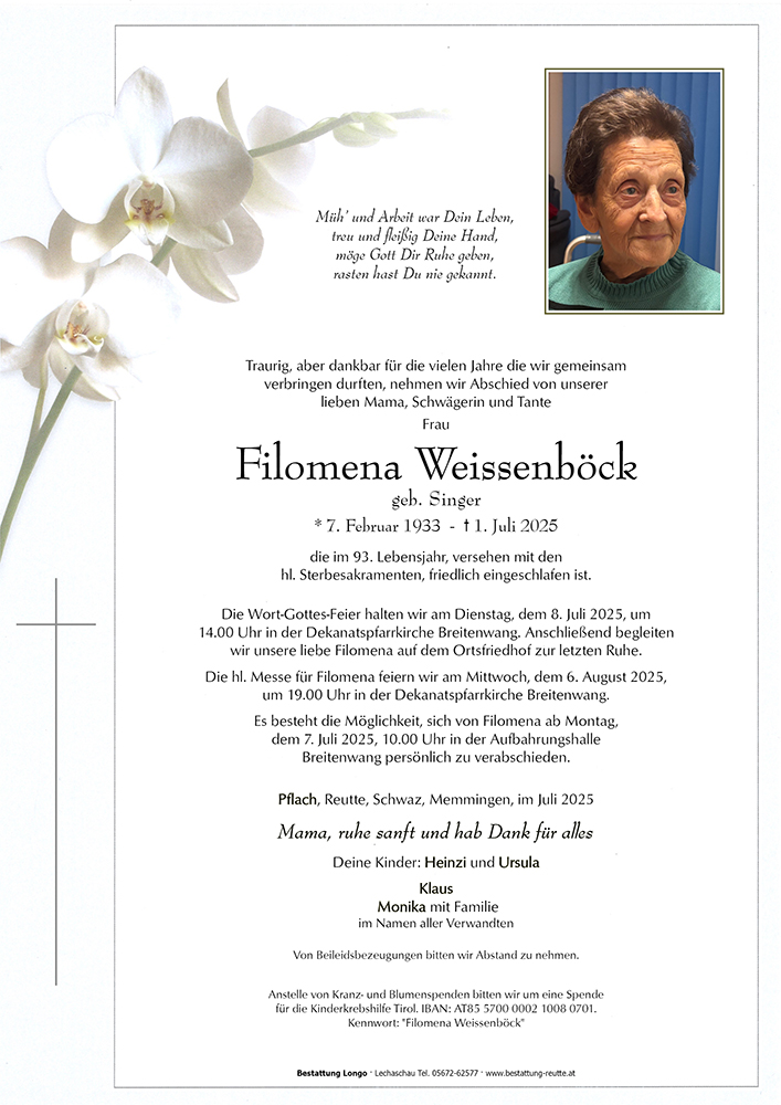 Kondolenzbuch für Filomena Weissenböck