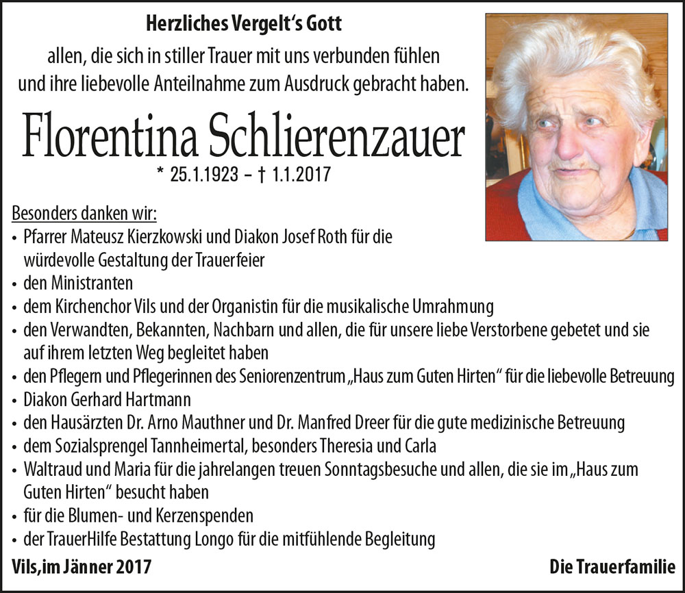 Kondolenzbuch für Florentina Schlierenzauer