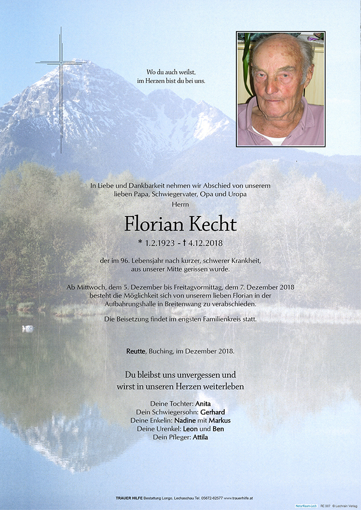 Kondolenzbuch für Florian Kecht