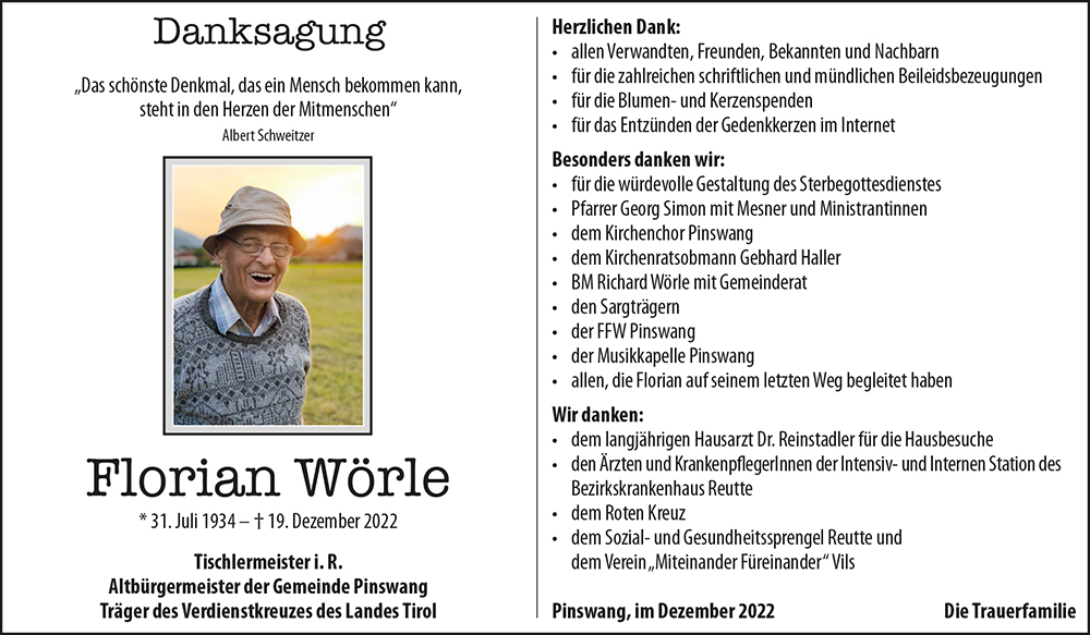 Unsere aufrichtige Anteilnahme gilt der Familie.
