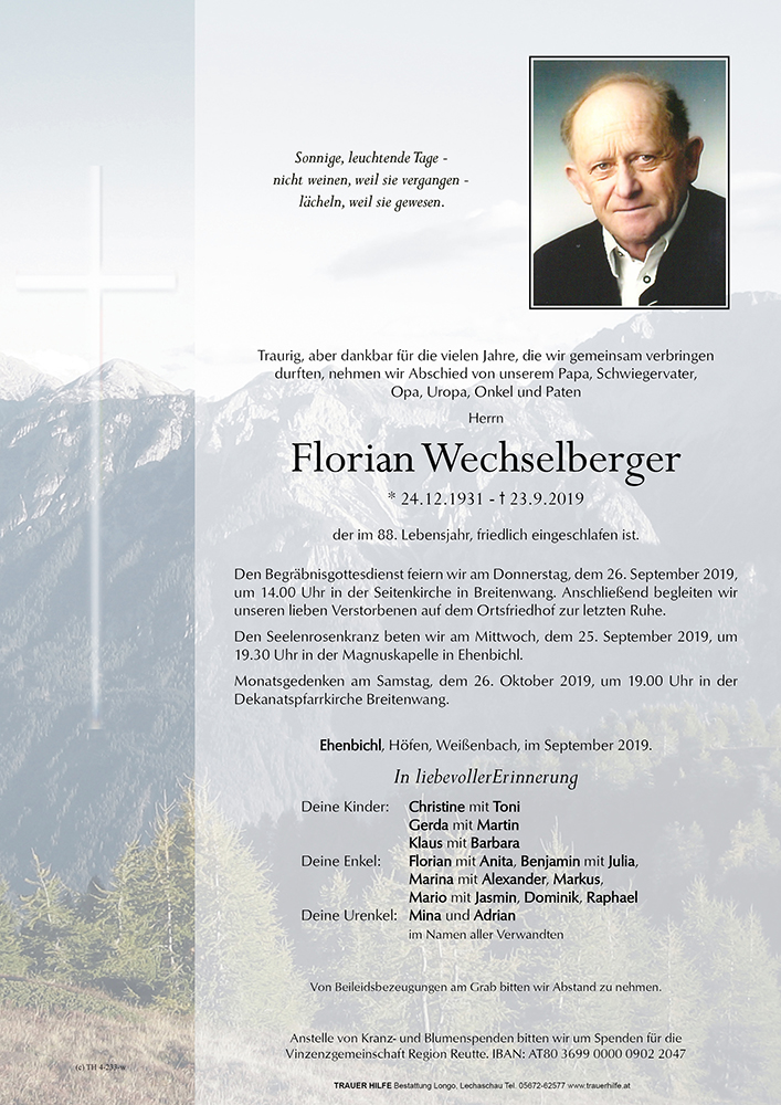 Kondolenzbuch für Florian Wechselberger