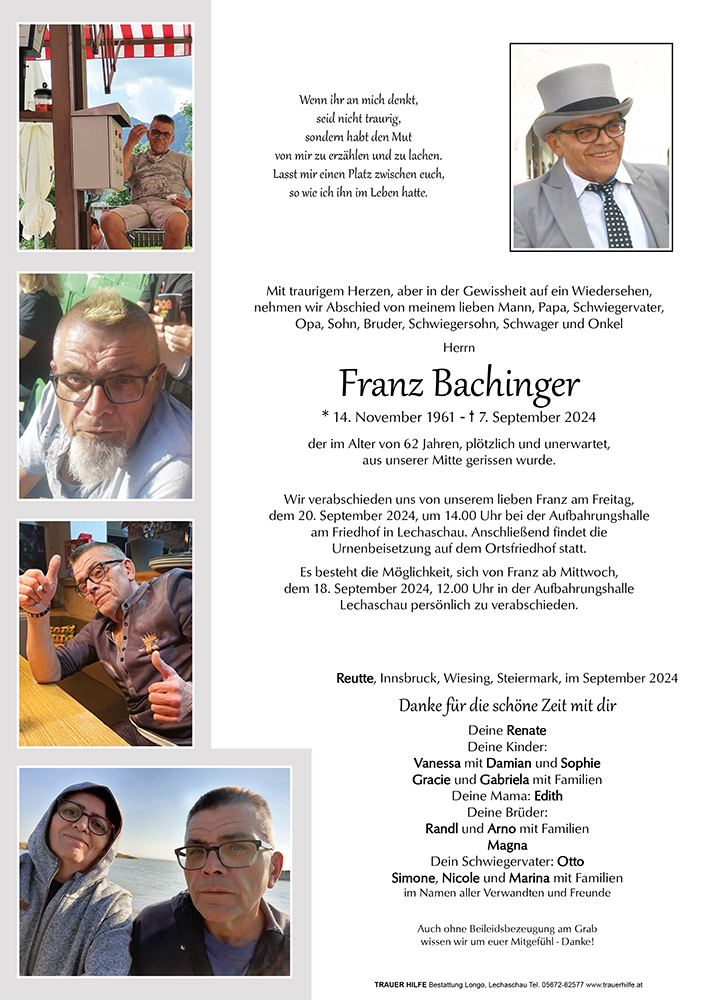 Kondolenzbuch für Franz Bachinger