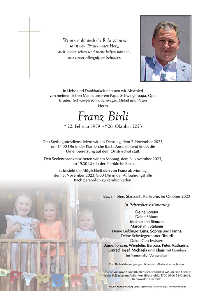 Wir möchten euch unser herzlichstes Beileid zum Verlust von Franz aussprechen und wünschen euch viel Kraft in dieser Zeit.