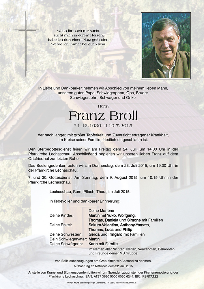 wir möchten Euch zum Tod Eures geliebten Franz unser tief empfundenes Mitgefühl aussprechen!