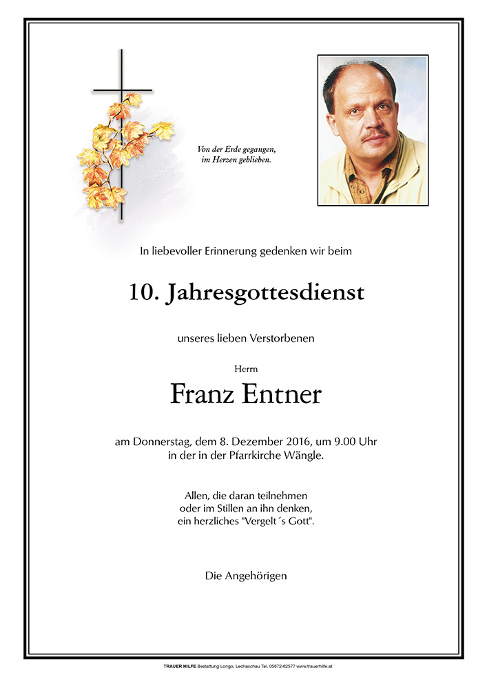 04.10.1962 08.12.2006 Wängle Franz Entner Action Parte Gedenkkerzen Kondolenzen Jahrestag Parte Gedenkkerzen Kondolenzen Jahrestag Parte herunterladen Gedenkkerzen für Franz Entner 10 Einträge Kerze anzünden Ruhe sanft in Gottes Hand! Ruhe in Frieden! Ein Licht für die Ewigkeit! Ein WEIHNACHTSLICHT für ALLE! Ein Licht für die Ewigkeit! Ruhe sanft in Gottes Hand! Ein Licht zum 15. Jahrestags-Gedenken Ruhe in Frieden! Ruhe sanft in Gottes Hand! Ein Licht für die Ewigkeit! Ihre Gedenkkerze fürFranz Entner Ihr Name* Farbe auswählen Ihre Nachricht oder Name* E-Mail-Adresse* Mit dem Klicken auf "Kerze anzünden" erklären Sie sich mit unseren Datenschutzbestimmungen einverstanden. Kondolenzbuch für Franz Entner 0 Einträge Kondolenz verfassen Ihr Abschiedsgruß an Franz Entner Ihr Name* E-Mail-Adresse* Ihre Nachricht* Mit dem Klicken auf "Gruß absenden" erklären Sie sich mit unseren Datenschutzbestimmungen einverstanden. Jahrestag herunterladen