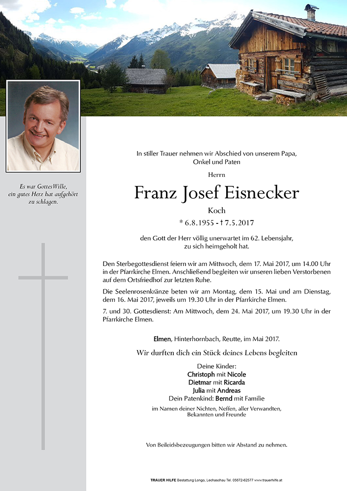 Kondolenzbuch für Franz Josef Eisnecker