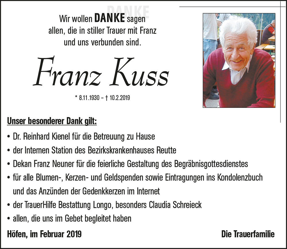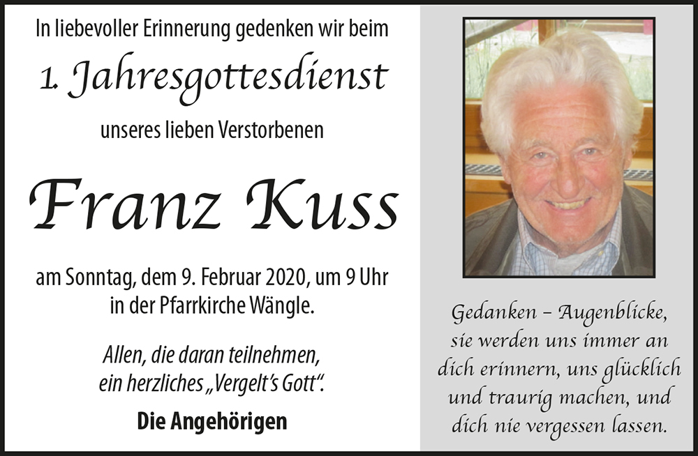 Kondolenzbuch für Franz Kuss