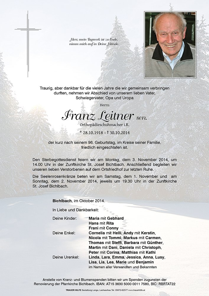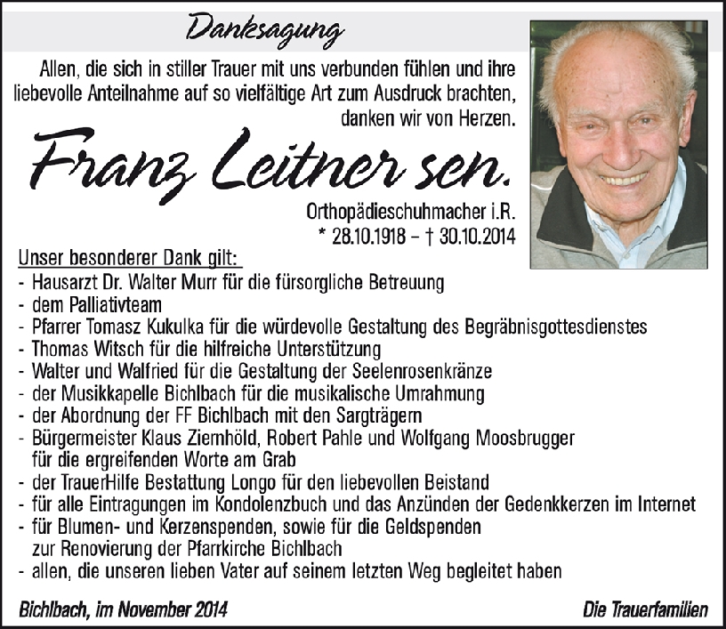 Kondolenzbuch für Franz Leitner sen.