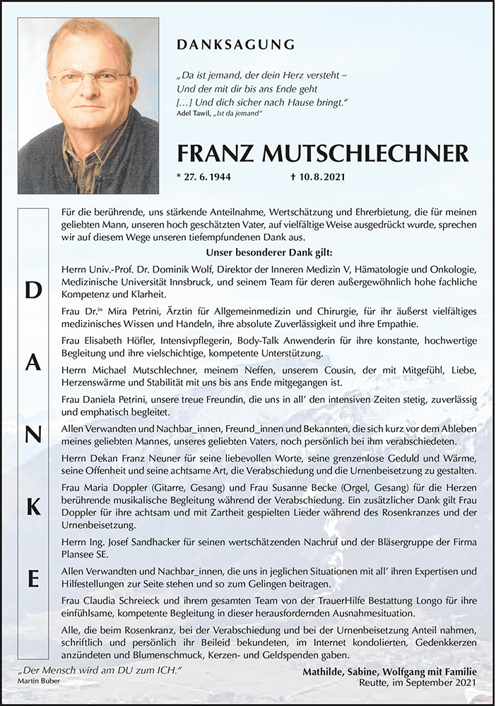 mit großer Trauer haben wir diese Meldung aufgenommen und wünschen Kraft in dieser schweren Zeit. Seine positive Ausstrahlung wird uns lange in Erinnerung bleiben. Leb\' wohl Franz!