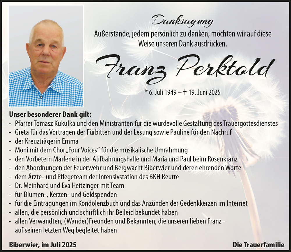 Kondolenzbuch für Franz Perktold