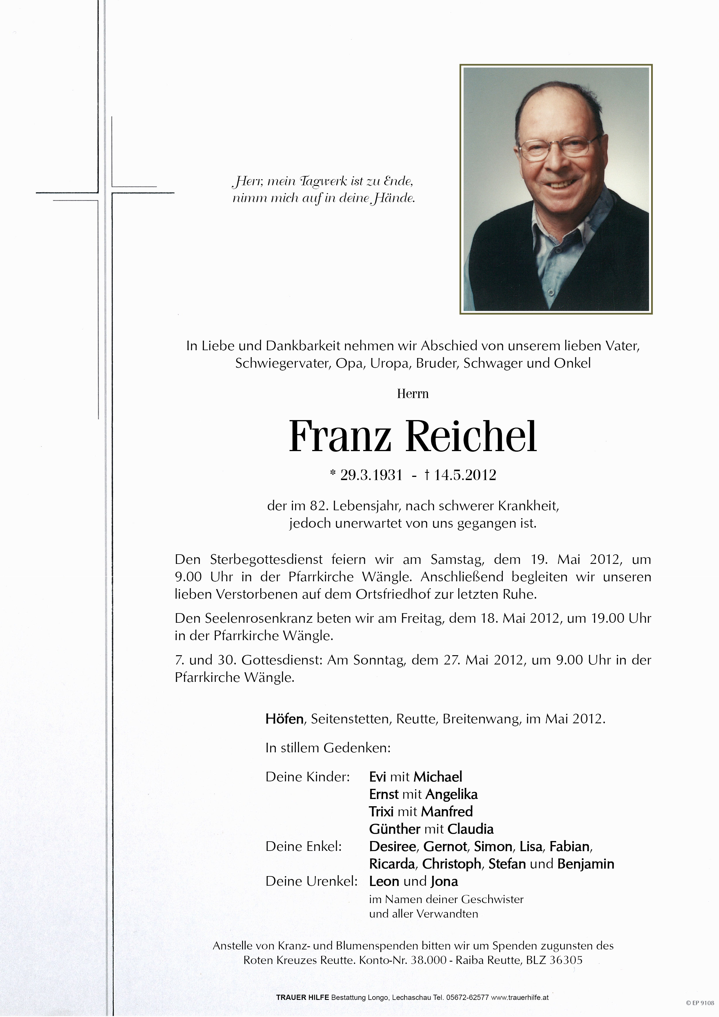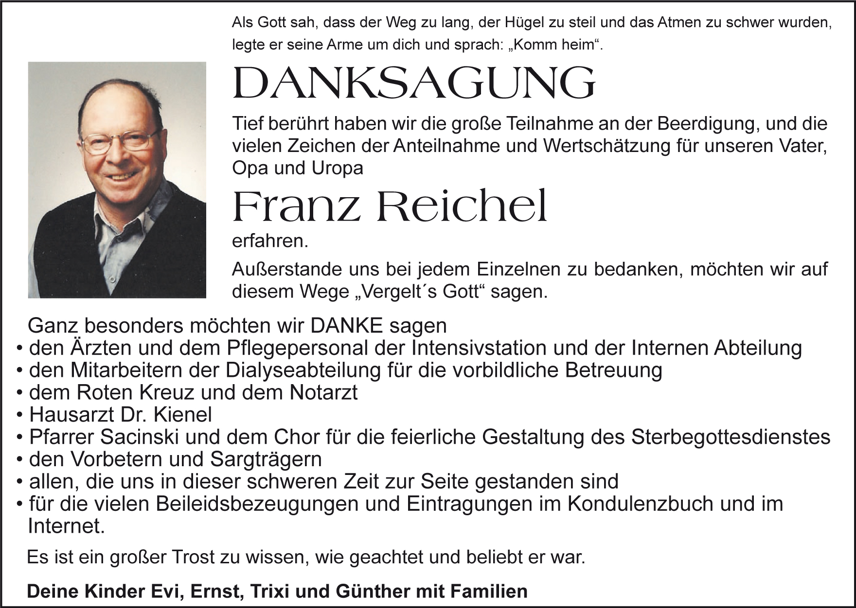 Ein aufrichtiges Beileid entbietet euch Fam. Reichel Wilfried mit Familie