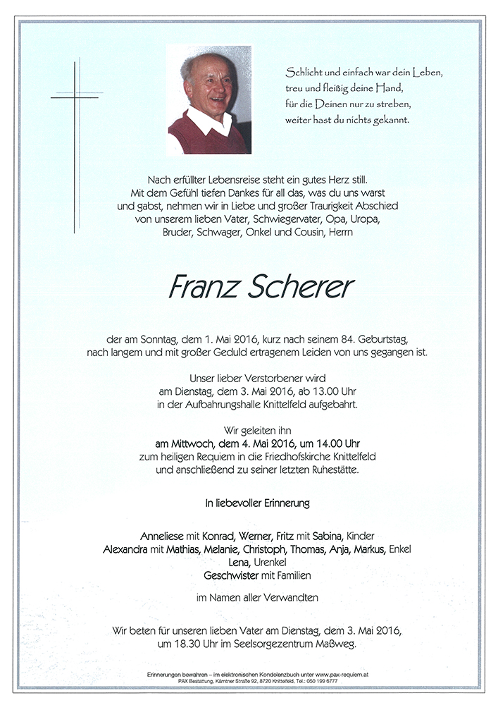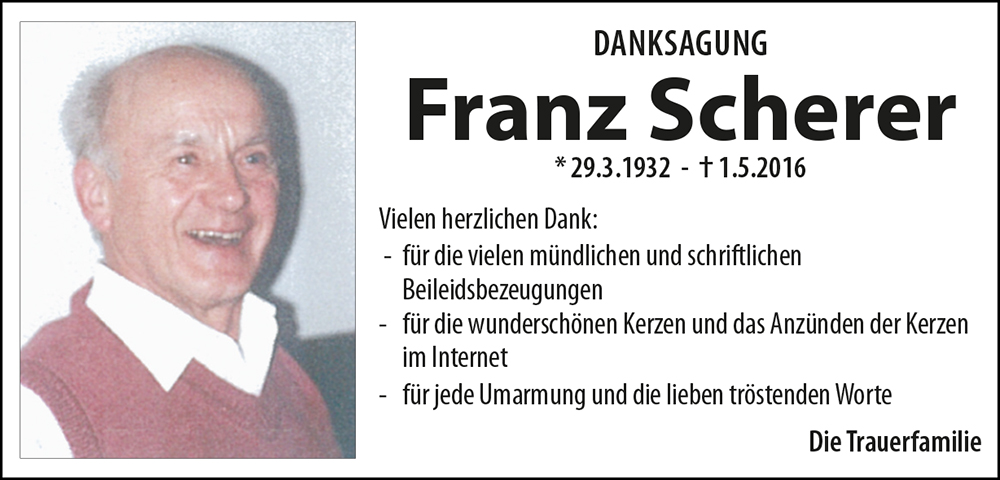 Kondolenzbuch für Franz Scherer