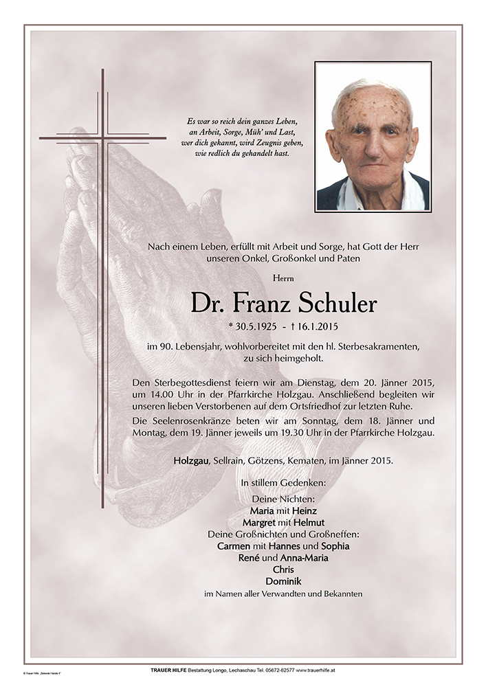 Ich erinnere mich noch gut an Dr. Schuler als Heimleiter des Bauernbundheimes in Innsbruck im Jahre 1962-1963.