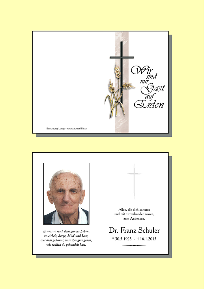 Kondolenzbuch für Franz Schuler