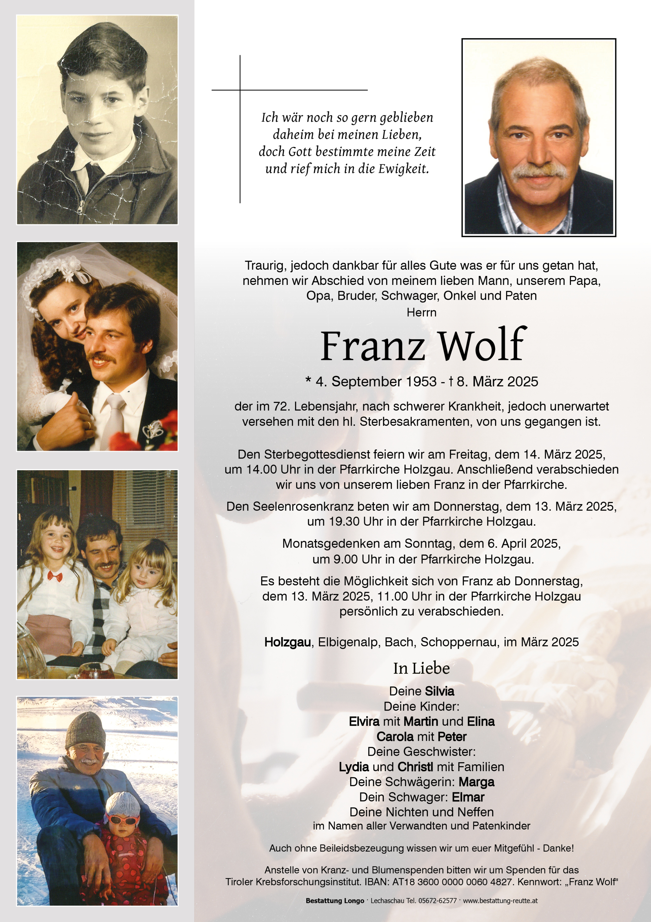 Kondolenzbuch für Franz Wolf