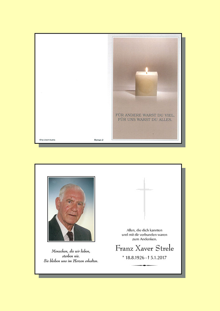 Gedenkkerzen für Franz Xaver Strele