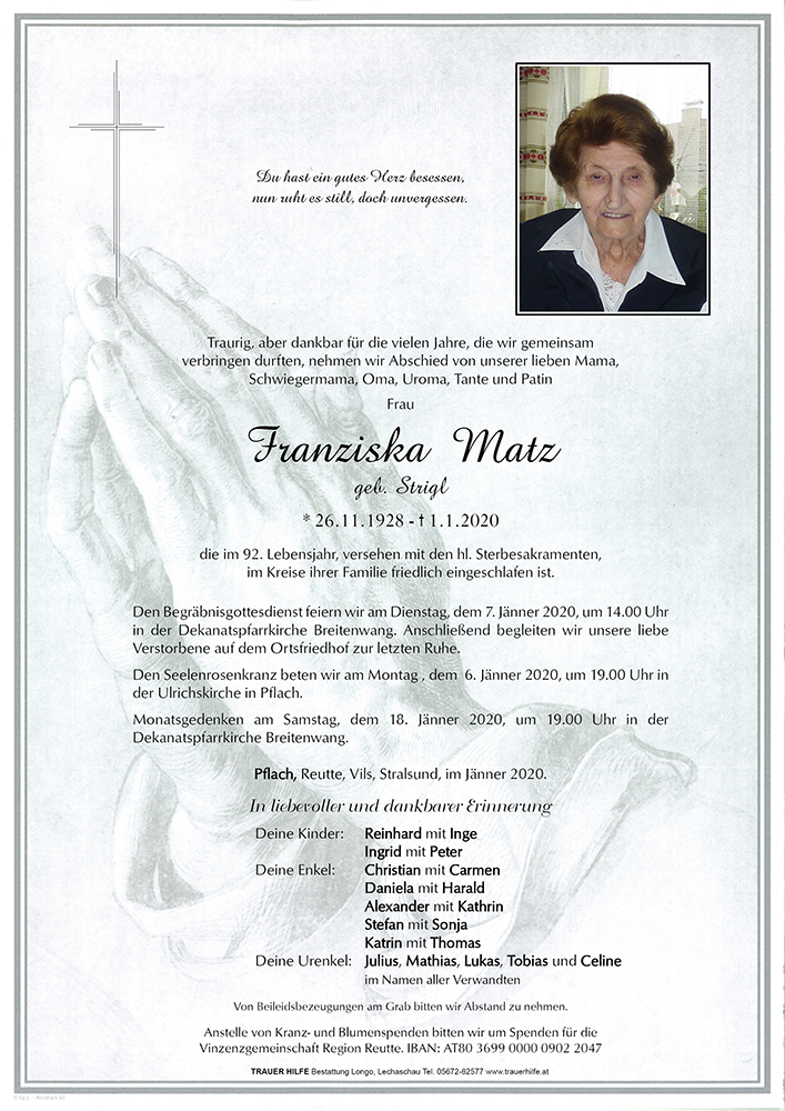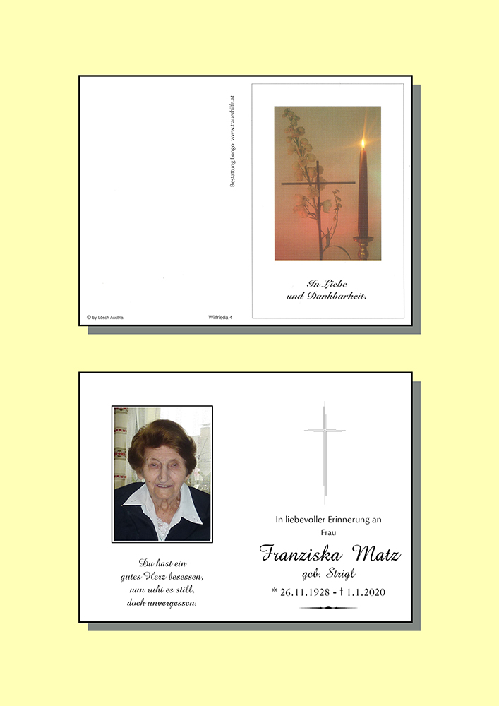 Kondolenzbuch für Franziska Matz