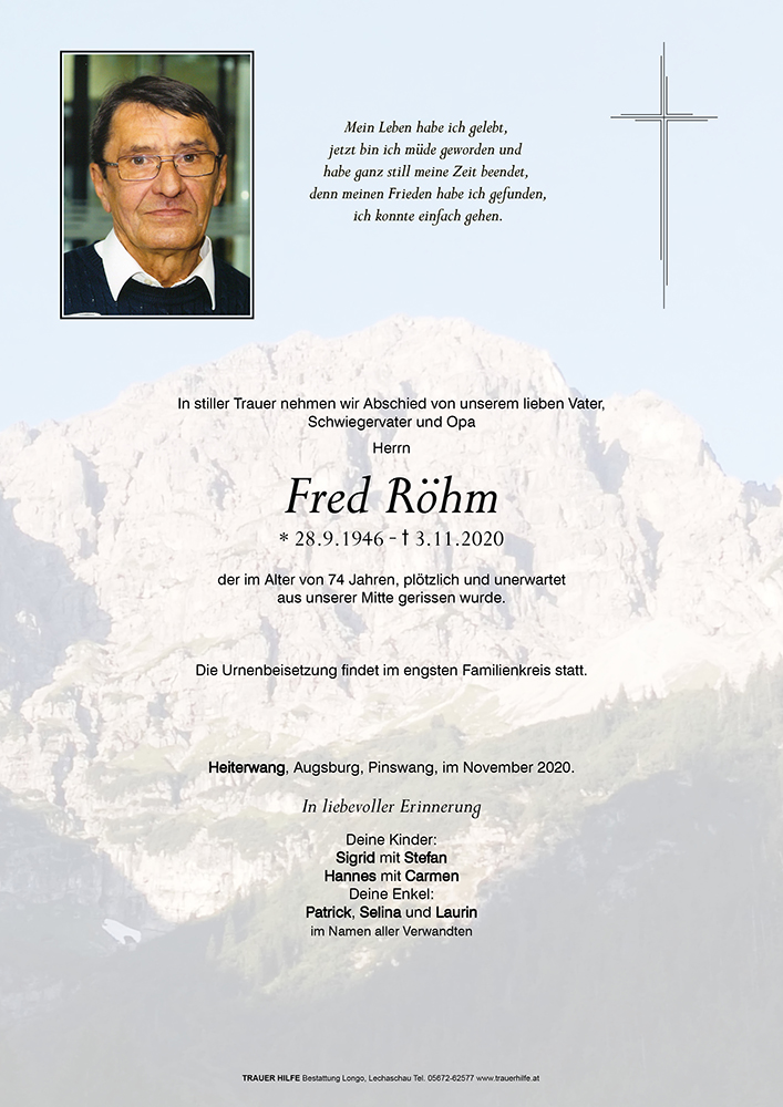 Kondolenzbuch für Fred Röhm