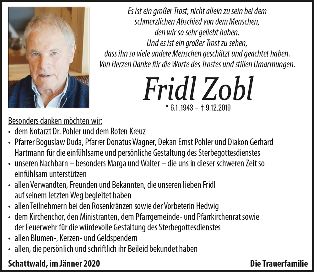 Wir haben Fridl sehr geschÀtzt. Er möge ruhen in Frieden.