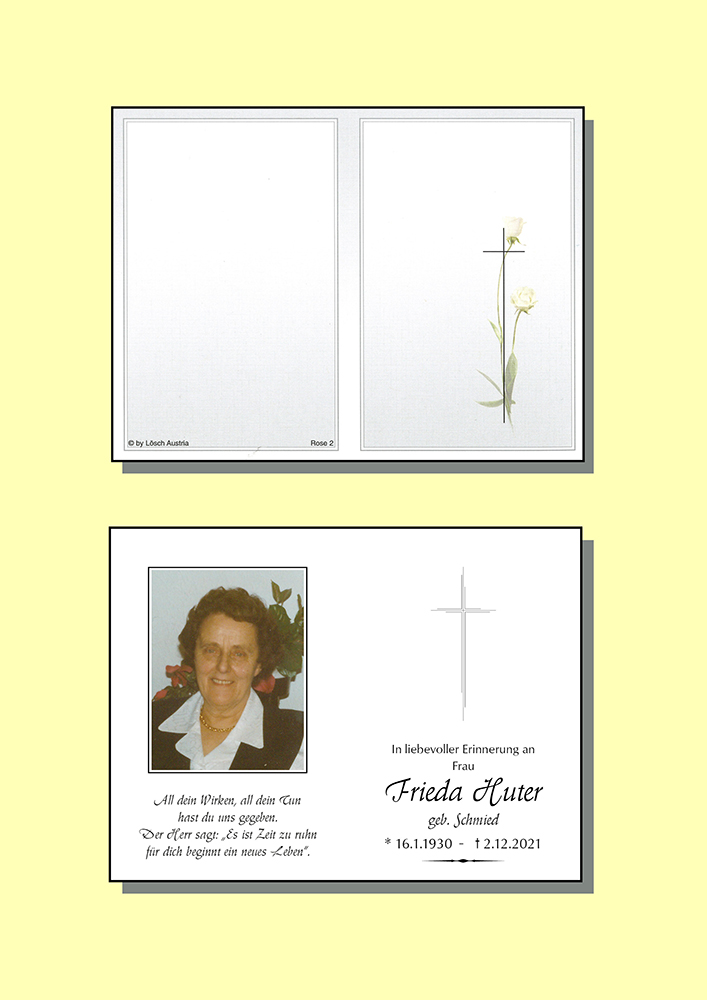 Wir fühlen mit Euch und möchten hiermit unser innigstes Beileid aussprechen. Eure liebe und herzensgute Mama und Oma hat ihr Tagwerk vollendet und in Gottes Hände gelegt. In Euren Erinnerungen, Eurer Liebe lebt sie weiter.