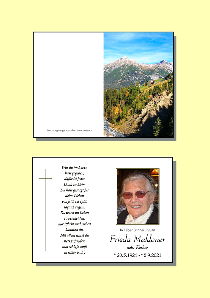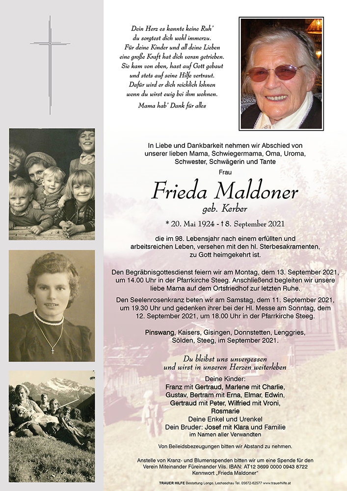 Kondolenzbuch für Frieda Maldoner