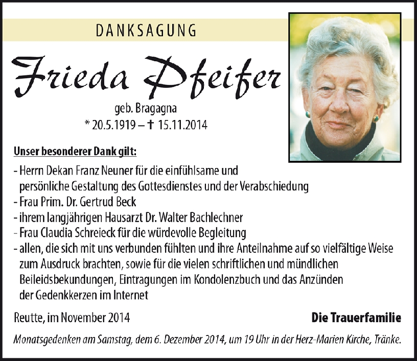 Kondolenzbuch für Frieda Pfeifer