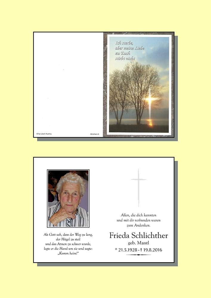 Nach einem langen irdischen Leben ist Frieda hinübergegangen ins ewige Leben.